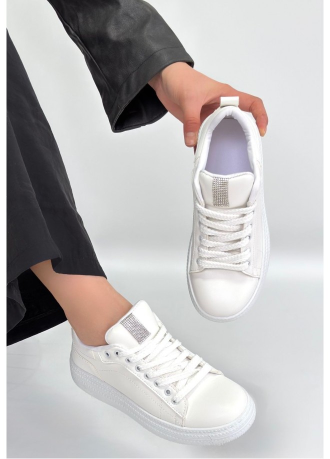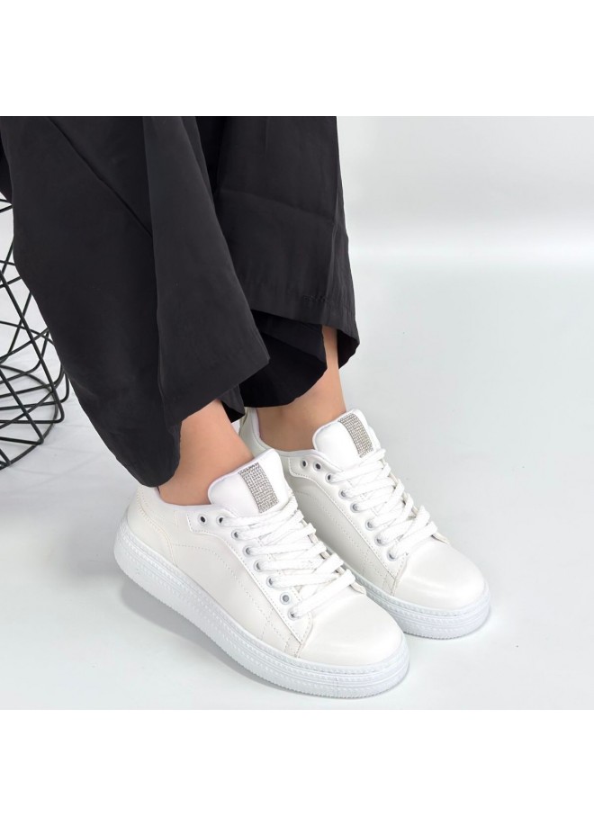 Yier Beyaz Cilt Bağcıklı Spor Ayakkabı