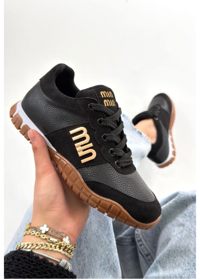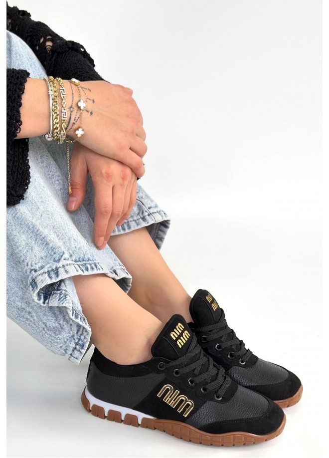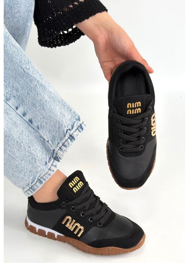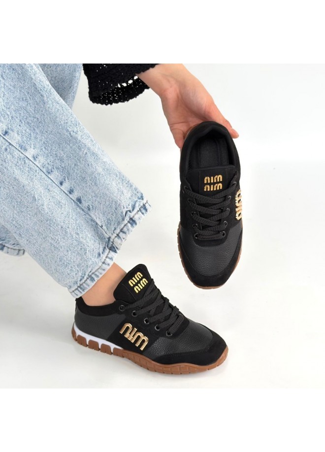 Marje Siyah Cilt Bağcıklı Spor Ayakkabı