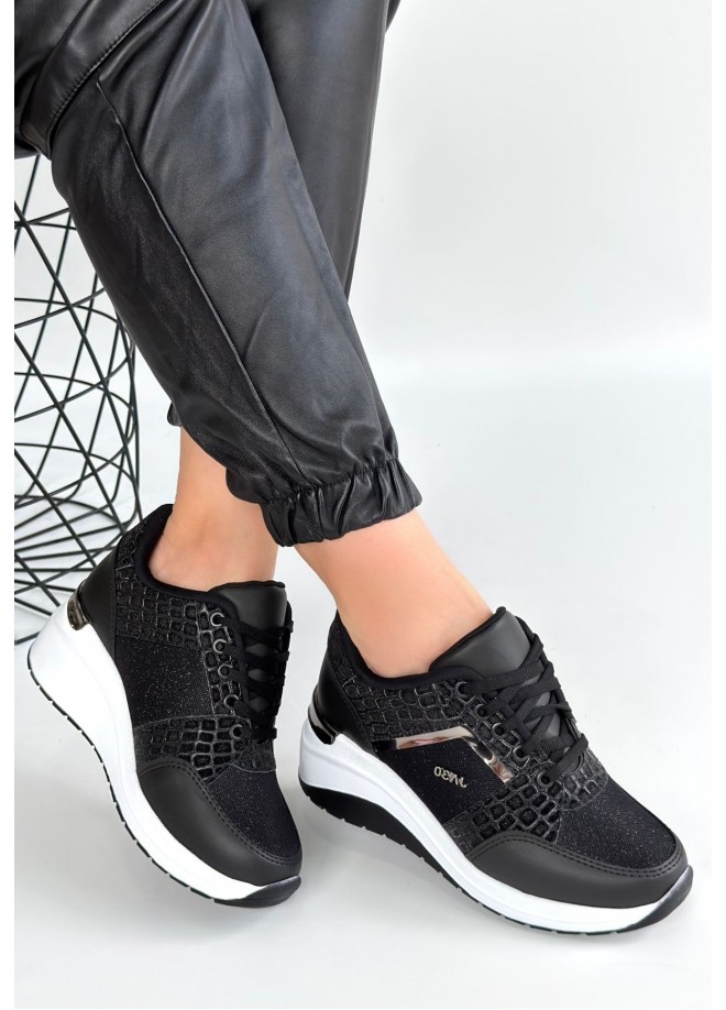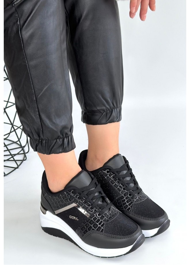 Geja Siyah Cilt Bağcıklı Beyaz Tabanlı Spor Ayakkabı