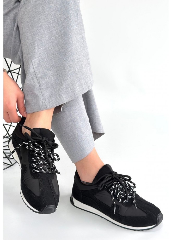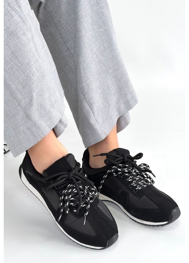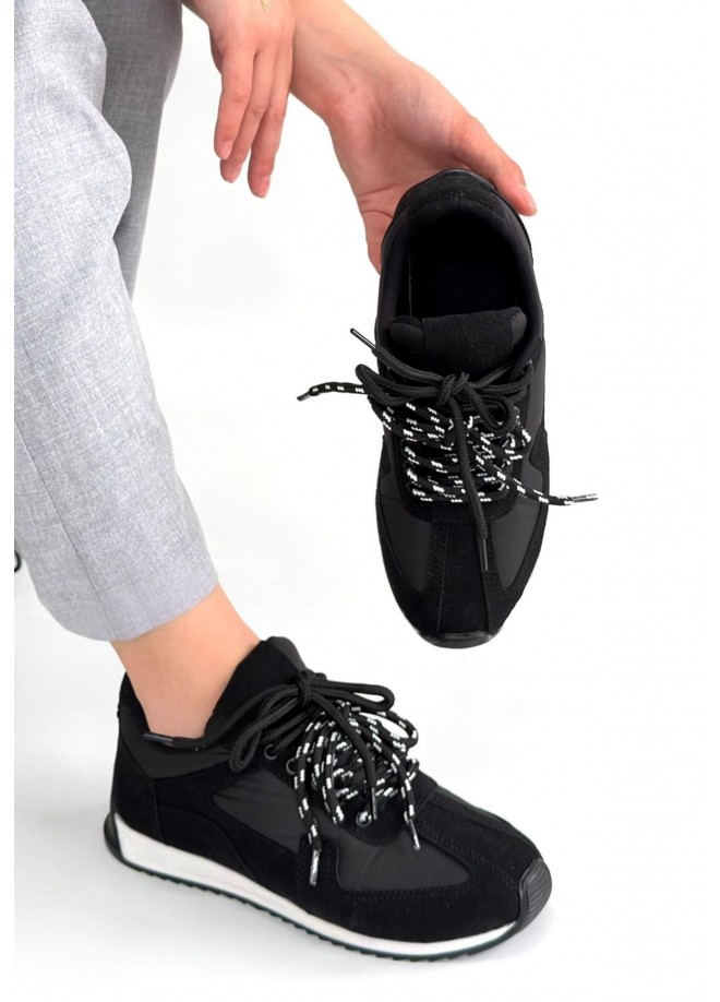 Jeat Siyah Nubuk Bağcıklı Spor Ayakkabı