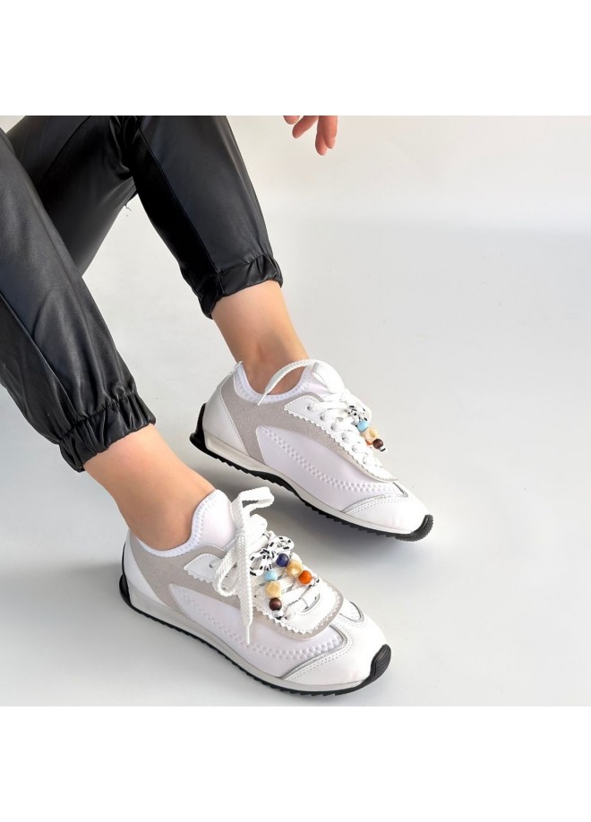 Riaf Beyaz Cilt Bağcıklı Spor Ayakkabı