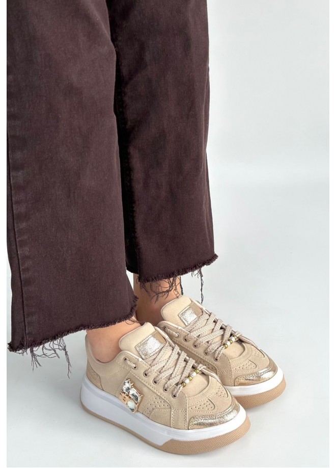 Ceans Bej Süet Bağcıklı Spor Ayakkabı