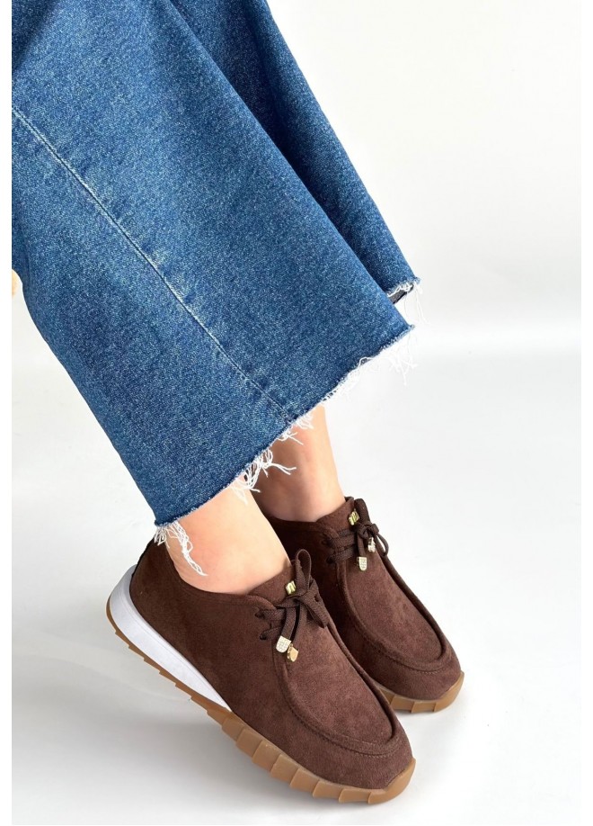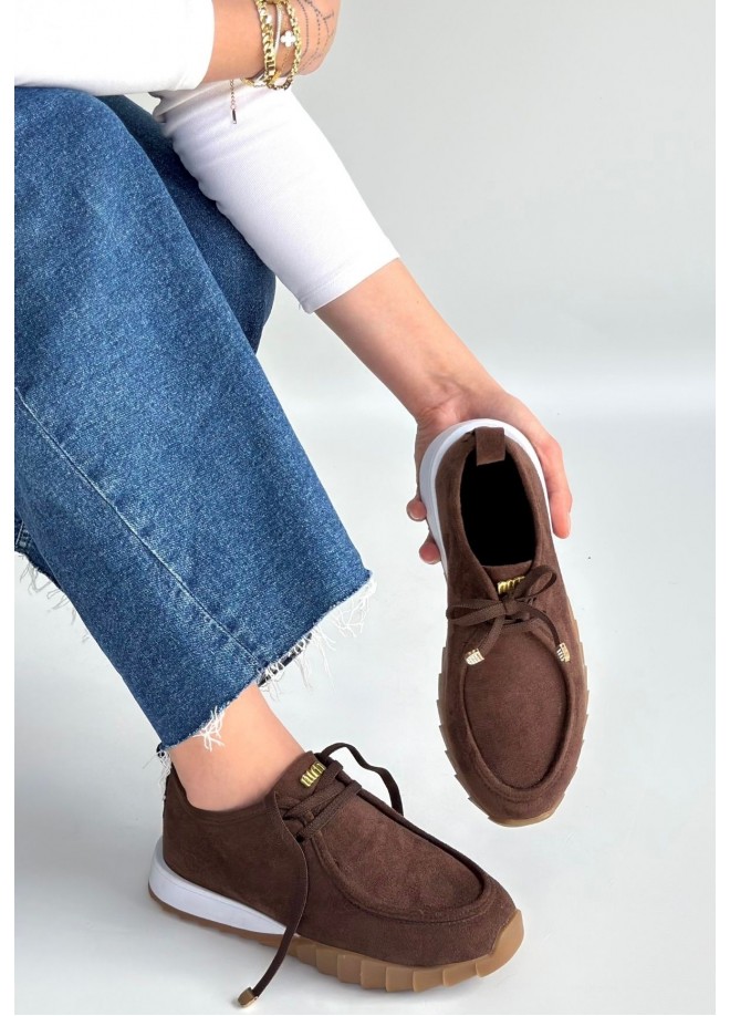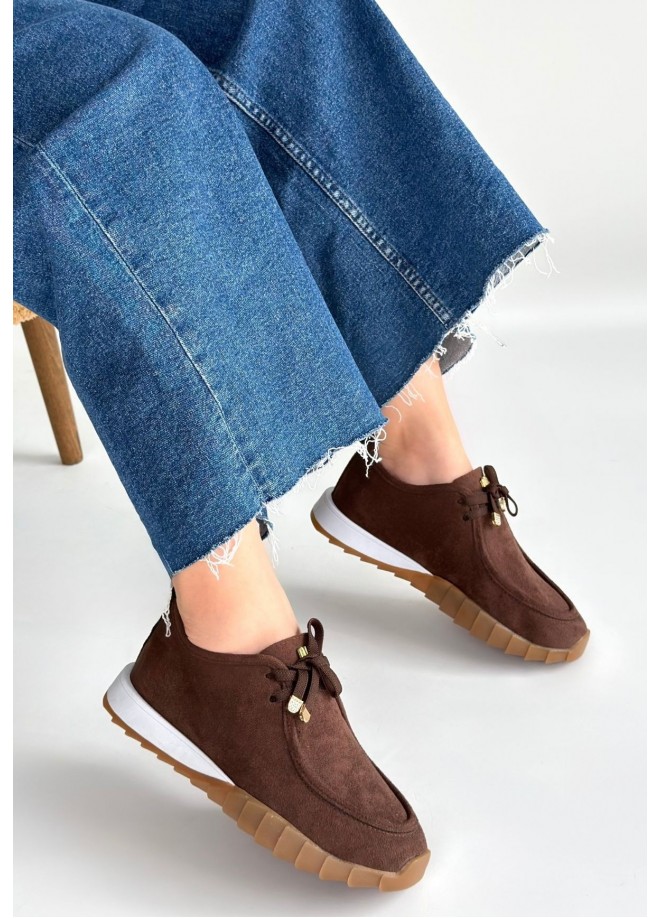 Sier Kahverengi Süet Bağcıklı Spor Ayakkabı