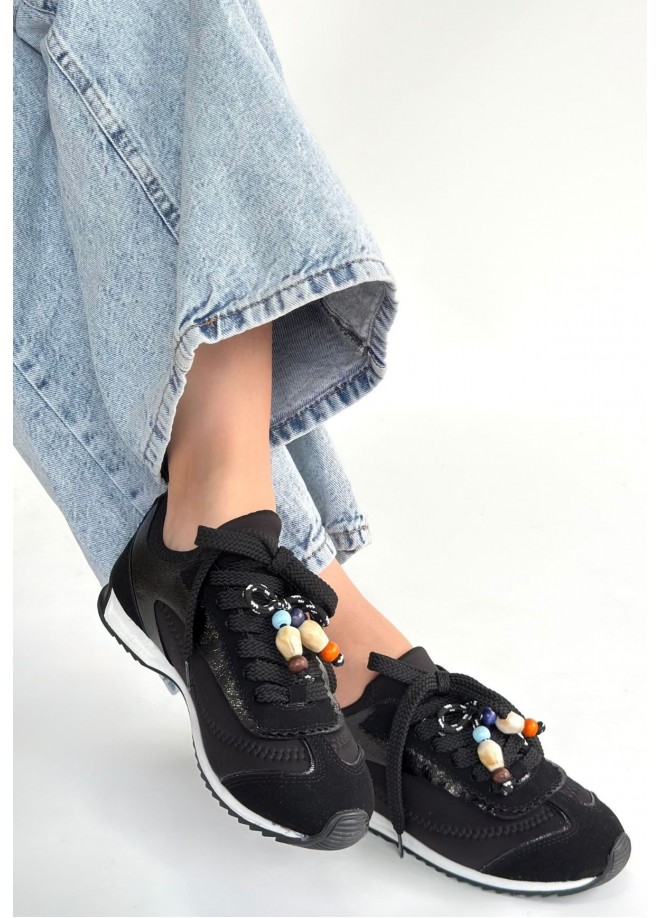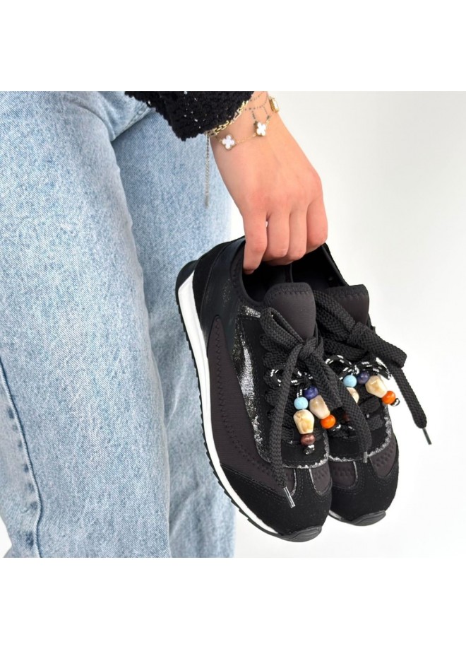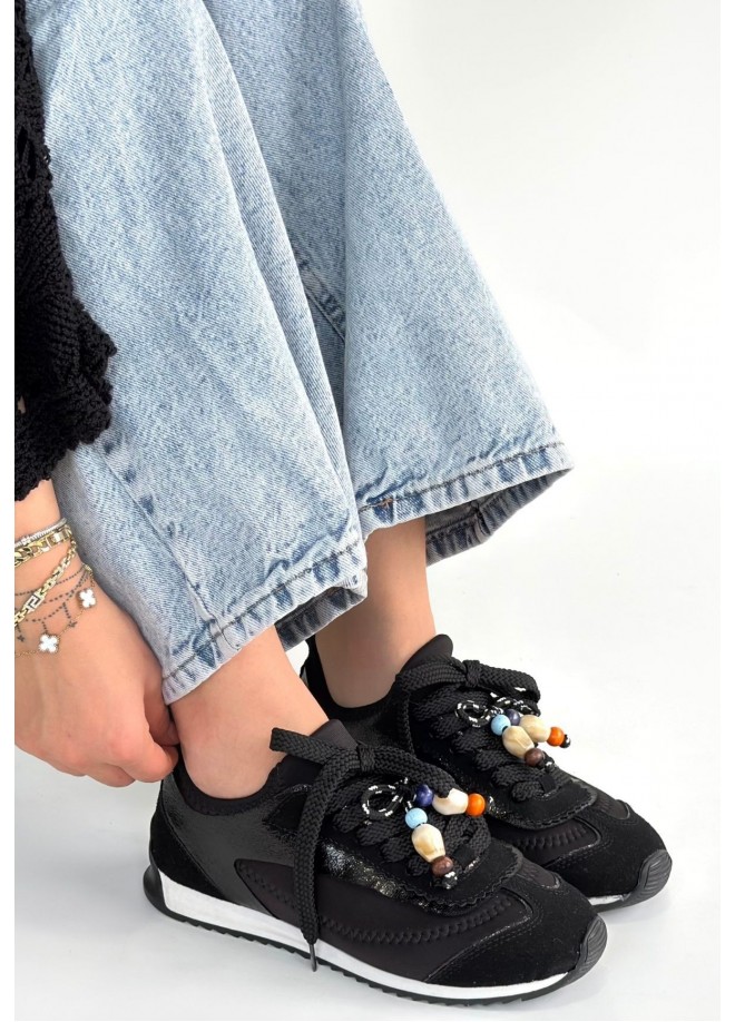 Riaf Siyah Cilt Bağcıklı Spor Ayakkabı