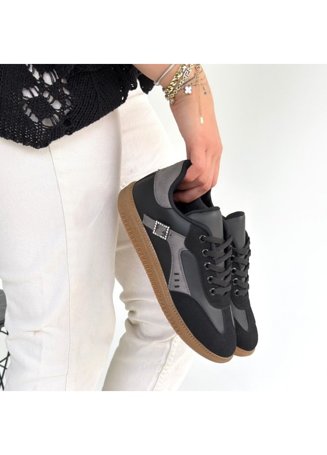Mier Siyah Cilt Bağcıklı Spor Ayakkabı