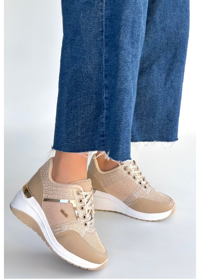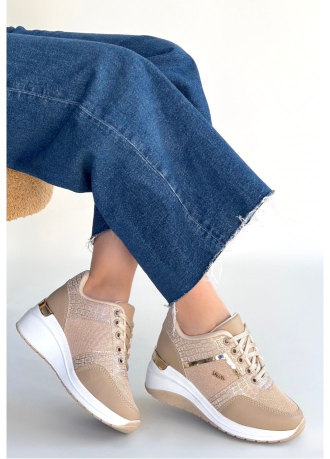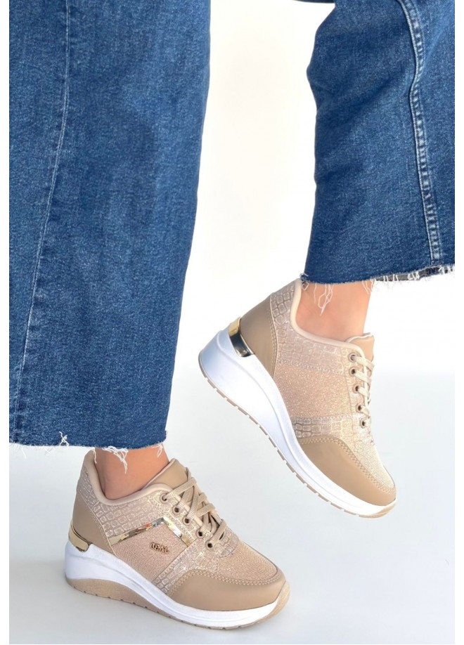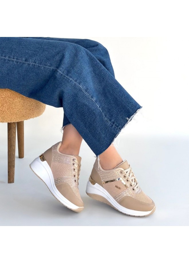 Geja Bej Cilt Bağcıklı Spor Ayakkabı