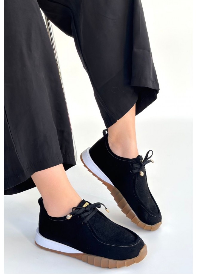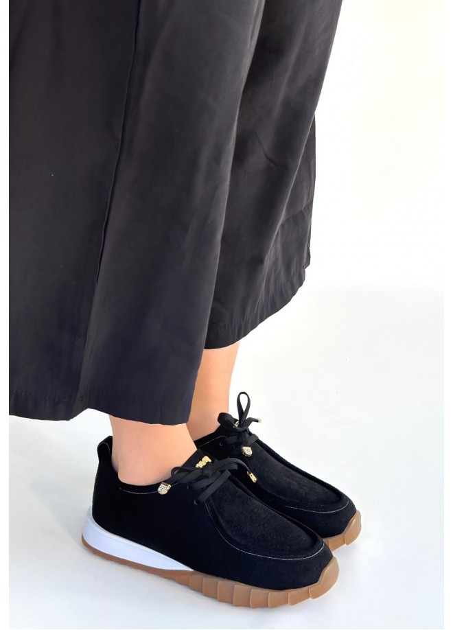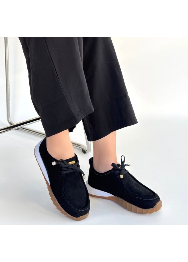 Sier Siyah Süet Bağcıklı Spor Ayakkabı