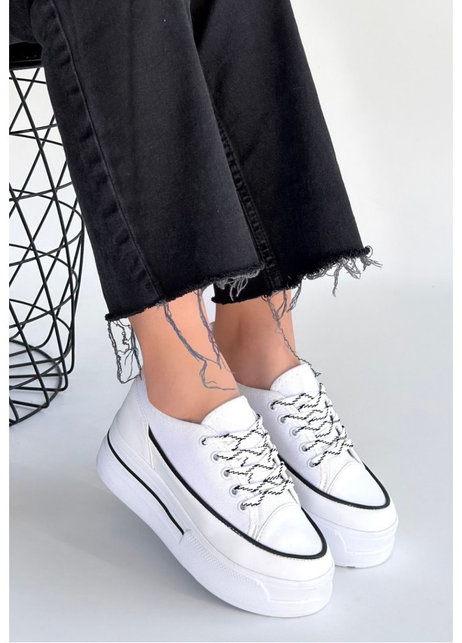 Dalen Beyaz Keten Bağcıklı Spor Ayakkabı