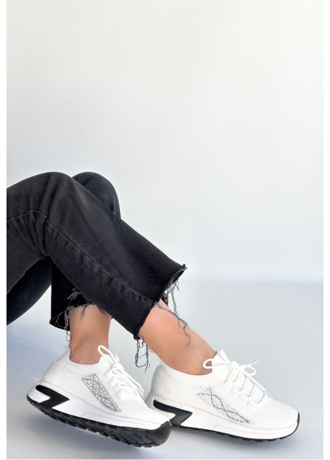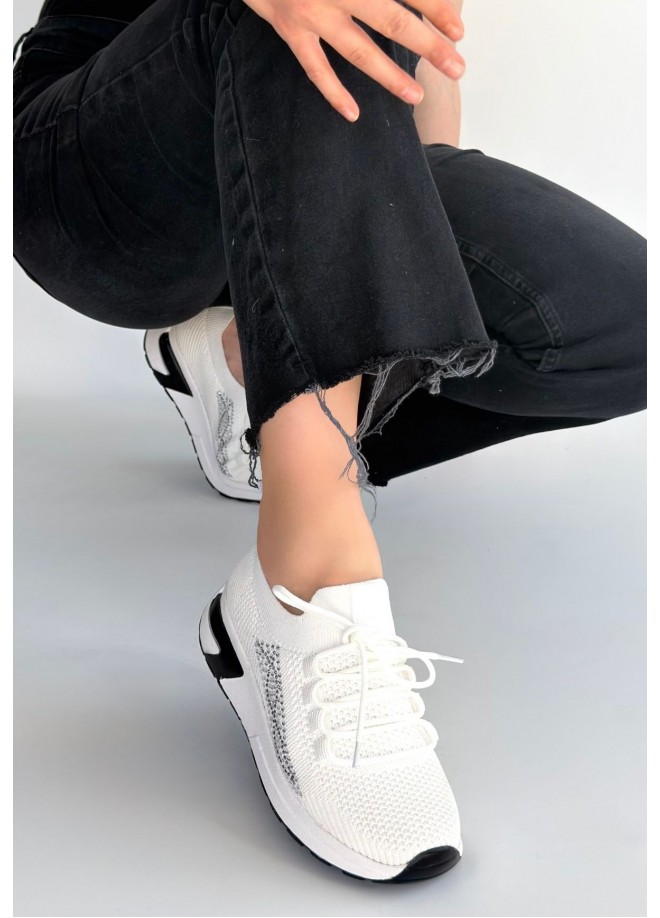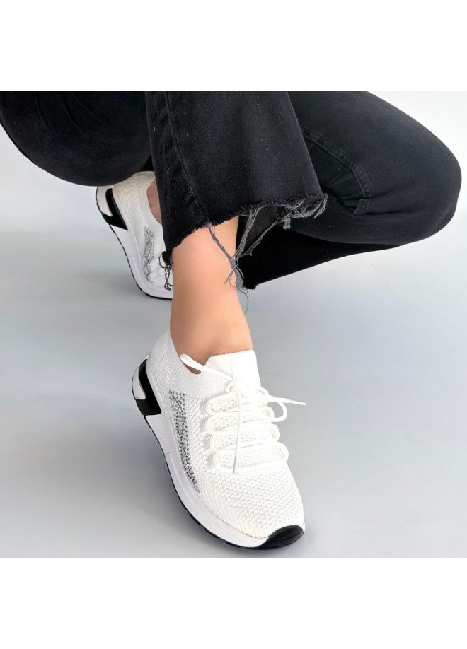 Belan Beyaz Triko Bağcıklı Spor Ayakkabı