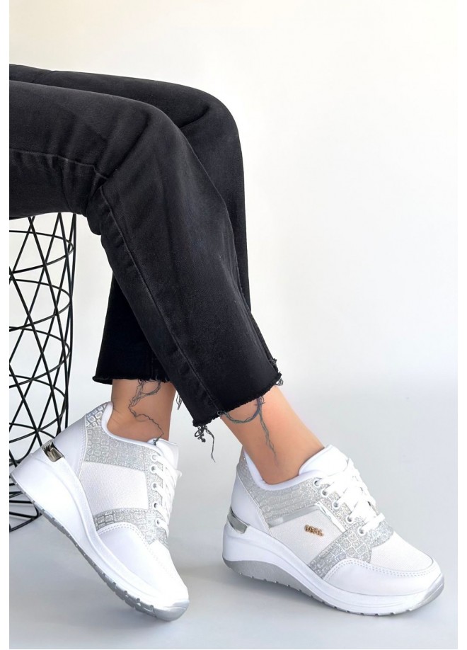 Geja Beyaz Cilt Bağcıklı Spor Ayakkabı