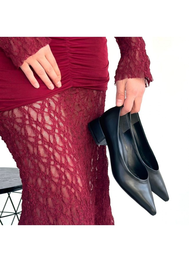 Ferla Siyah Cilt Topuklu Ayakkabı
