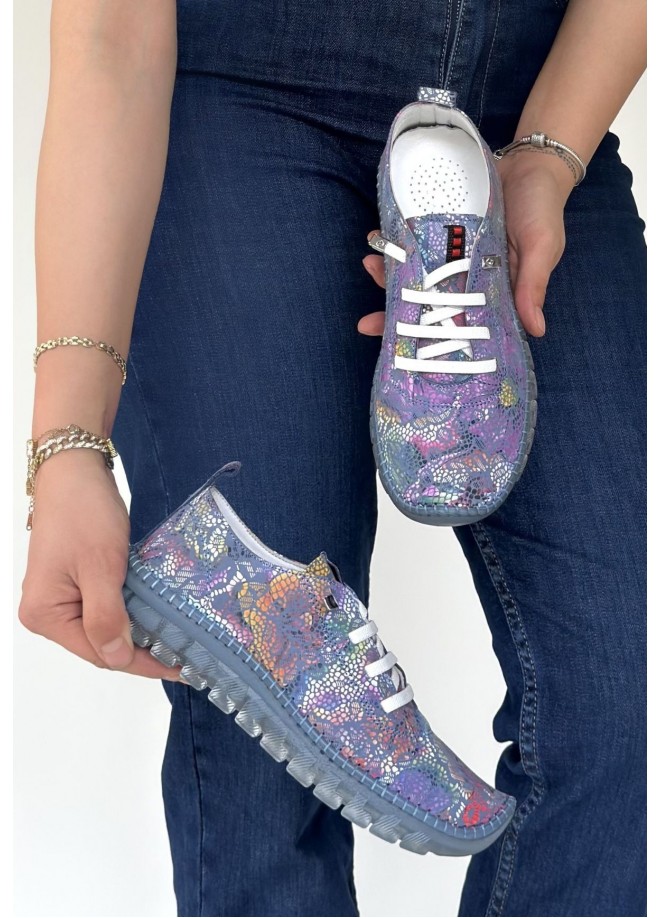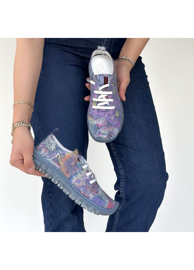 Jiten Mor Desenli Deri Bağcıklı Spor Ayakkabı