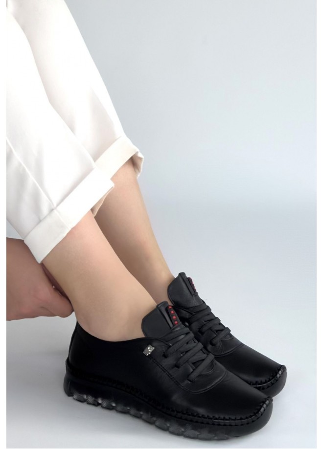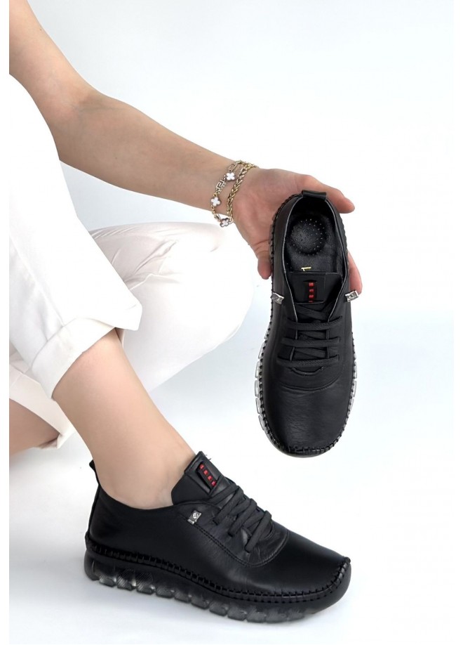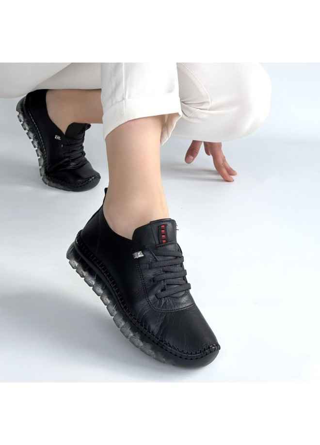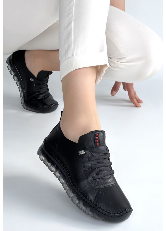 Jiten Siyah Deri Bağcıklı Spor Ayakkabı