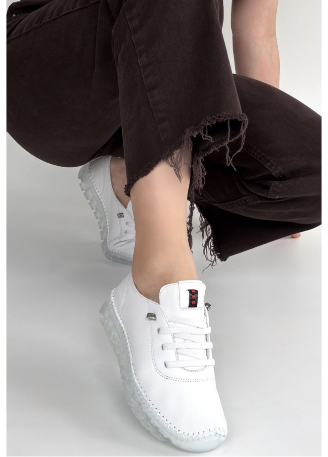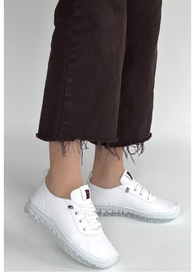 Jiten Beyaz Deri Bağcıklı Spor Ayakkabı