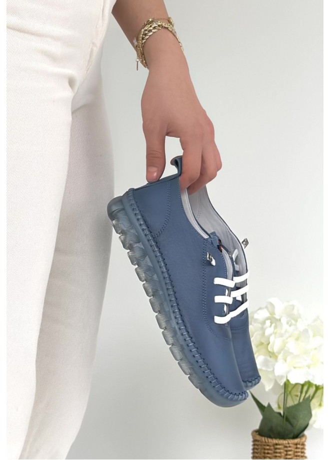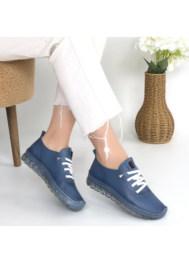 Jiten Mavi Deri Bağcıklı Spor Ayakkabı