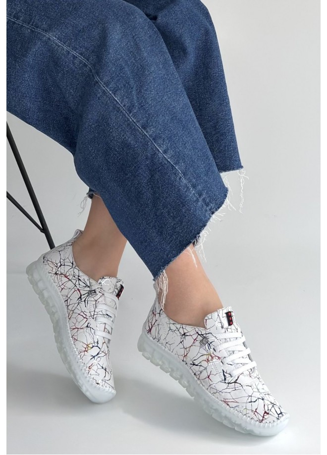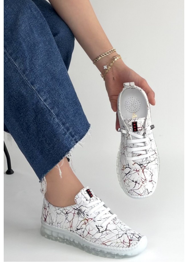 Jiten Beyaz Desenli Deri Bağcıklı Spor Ayakkabı