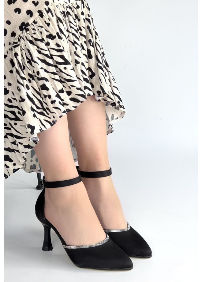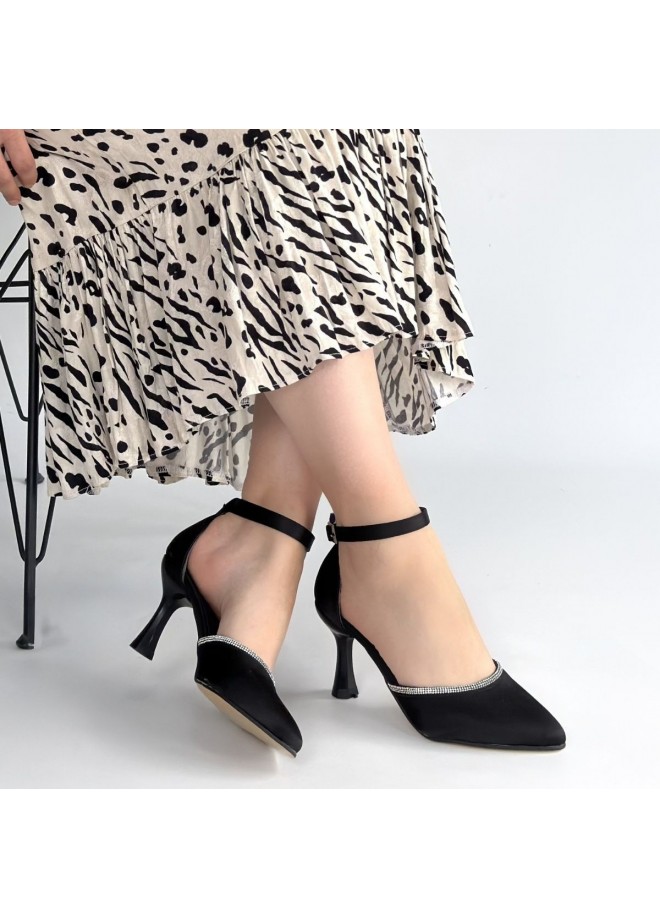 Mejja Siyah Saten Topuklu Ayakkabı