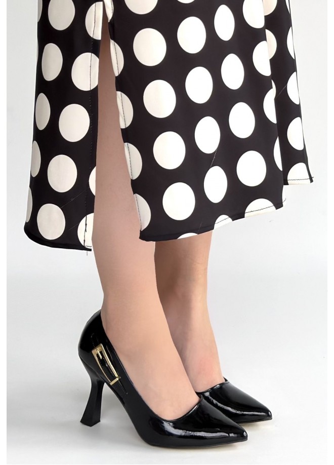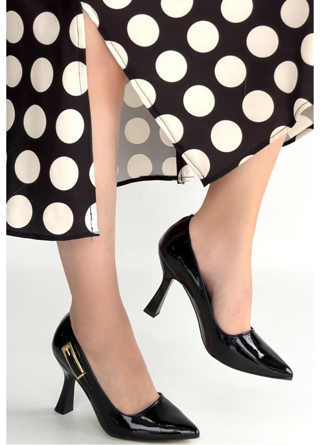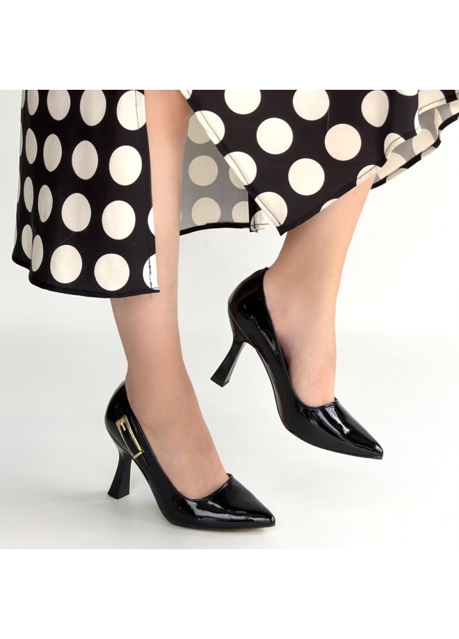 Cerin Siyah Rugan Topuklu Ayakkabı