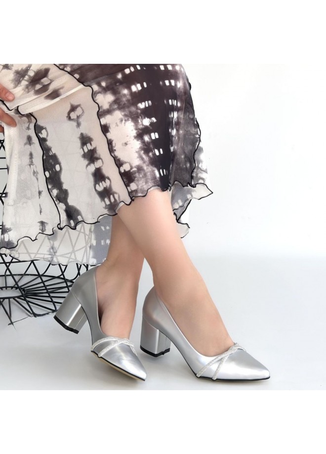 Rewin Gümüş Cilt Topuklu Ayakkabı