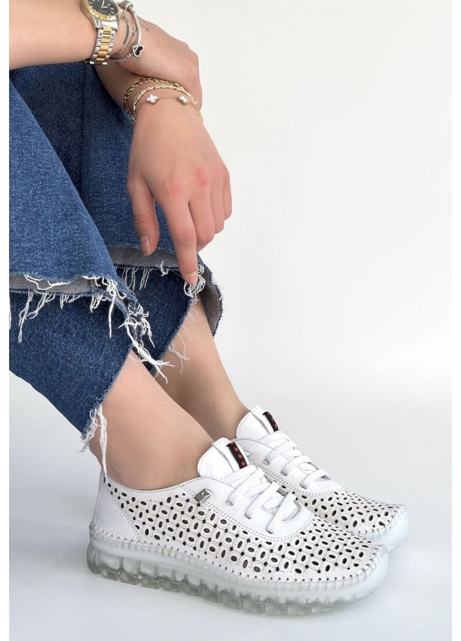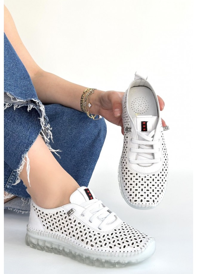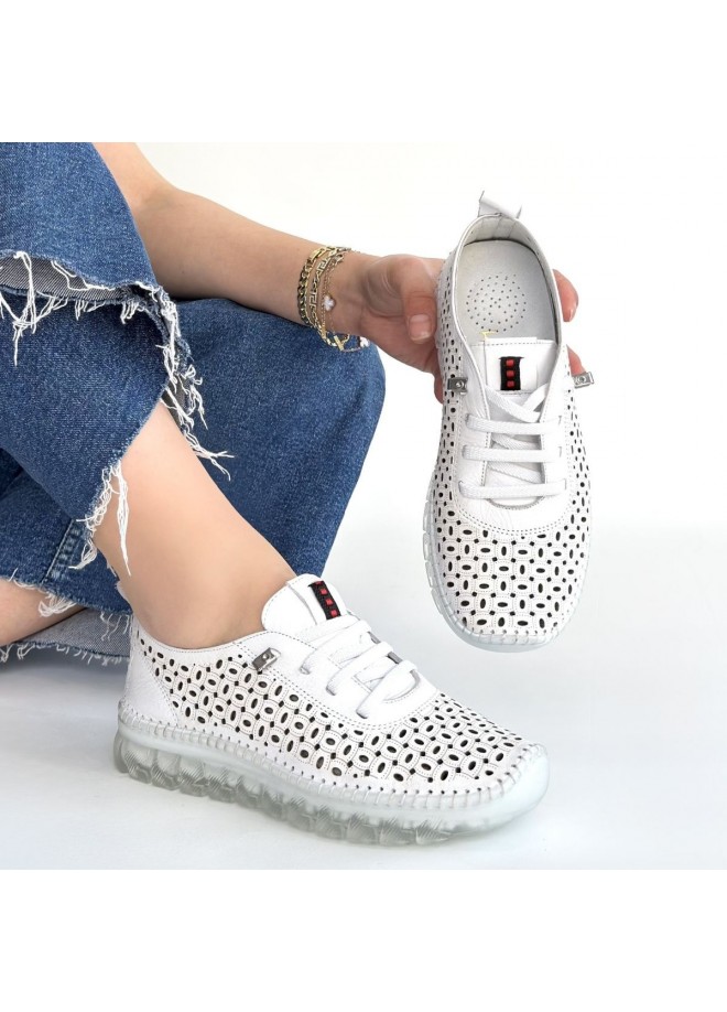 Otja Beyaz Deri Lazerli Bağcıklı Spor Ayakkabı