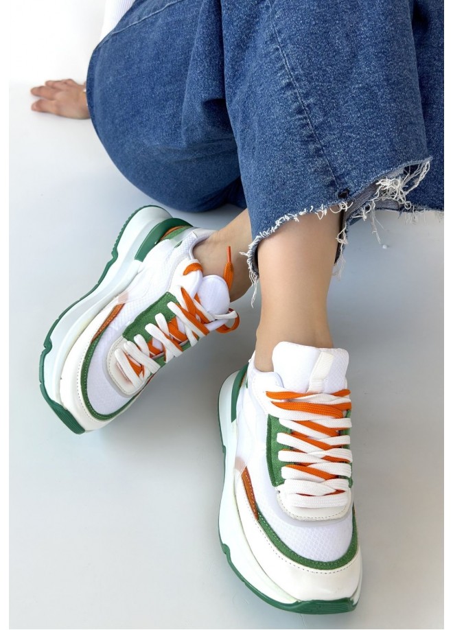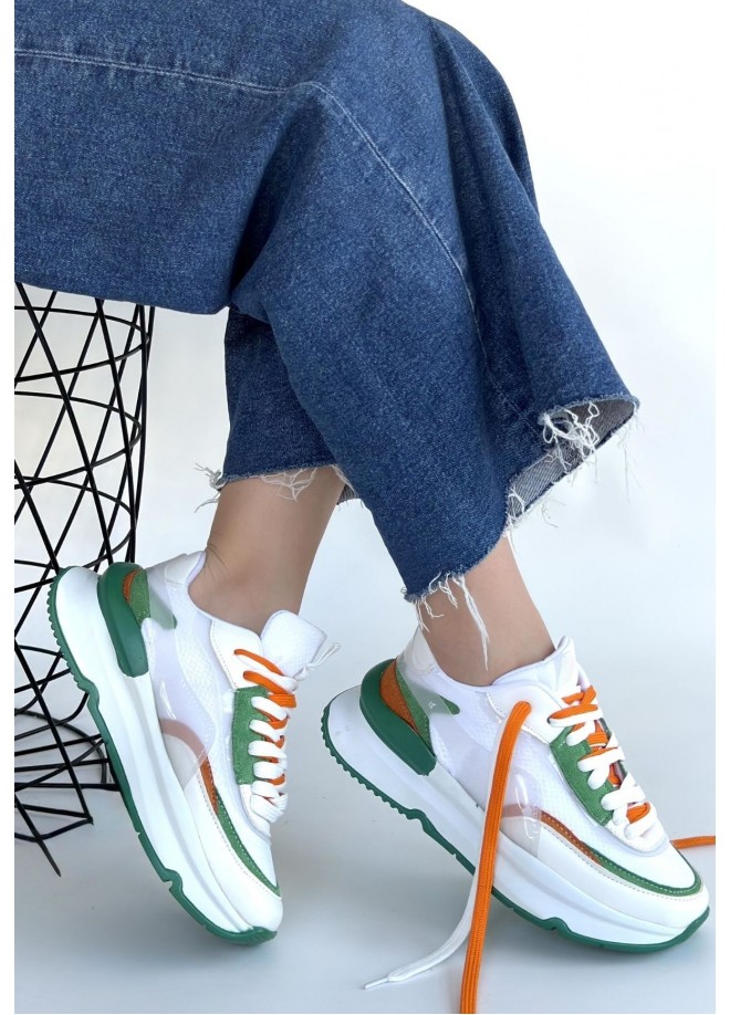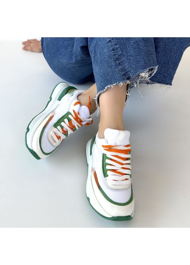 Aleh Beyaz Cilt Yeşil Detaylı Çift Bağcıklı Spor Ayakkabı