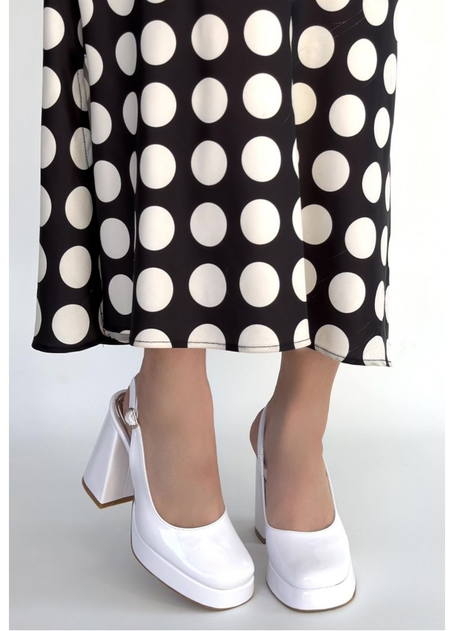Zuda Beyaz Rugan Platform Topuk Ayakkabı