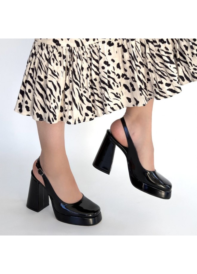 Zuda Siyah Rugan Platform Topuk Ayakkabı