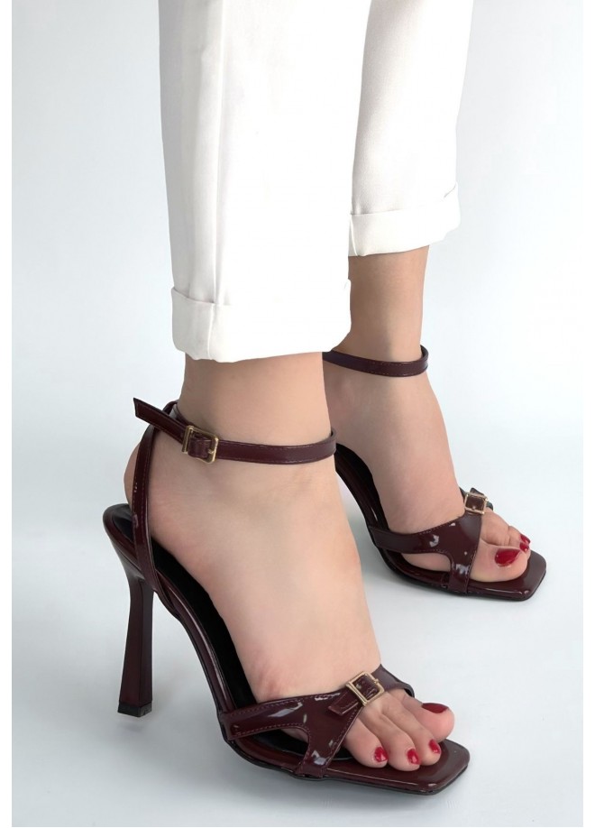 Mirge Bordo Rugan Topuklu Bilekten Kemerli Ayakkabı