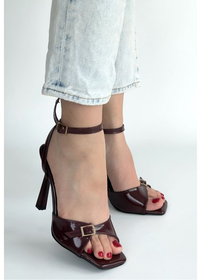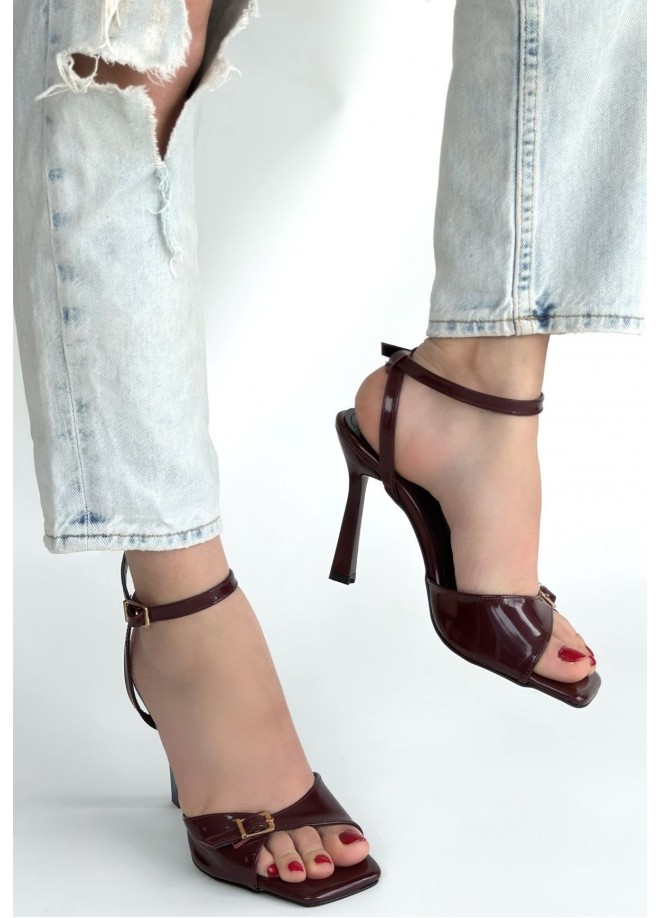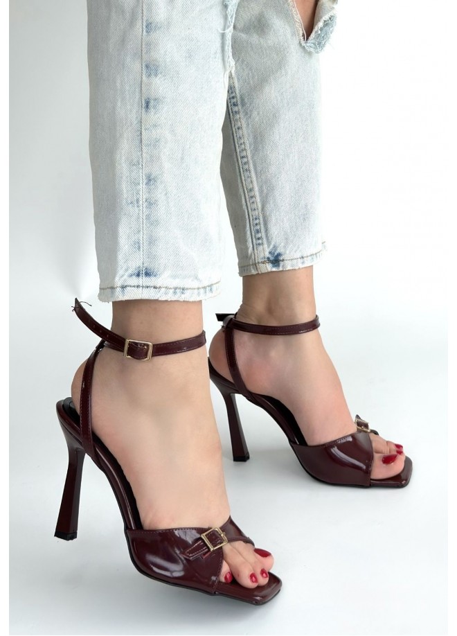 Hoste Bordo Rugan Topuklu Bilekten Kemerli Ayakkabı