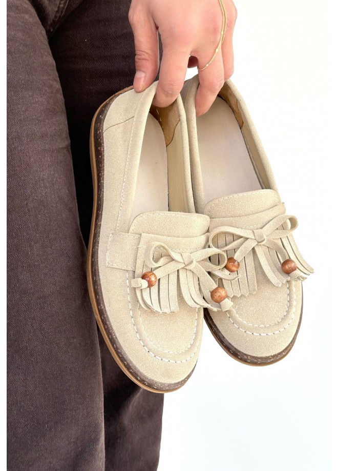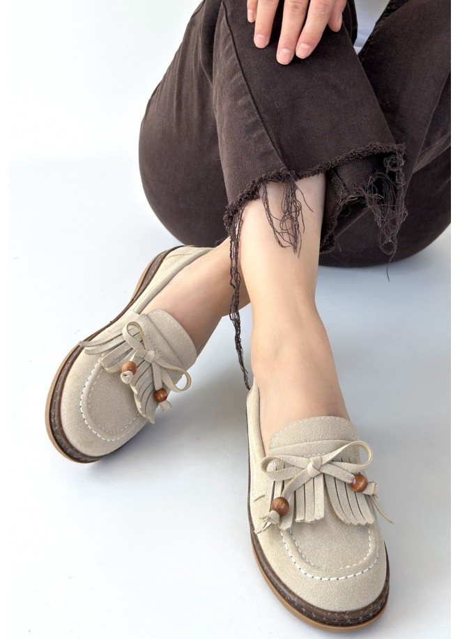 Boriy Bej Deri Tozu Süet Babet Ayakkabı
