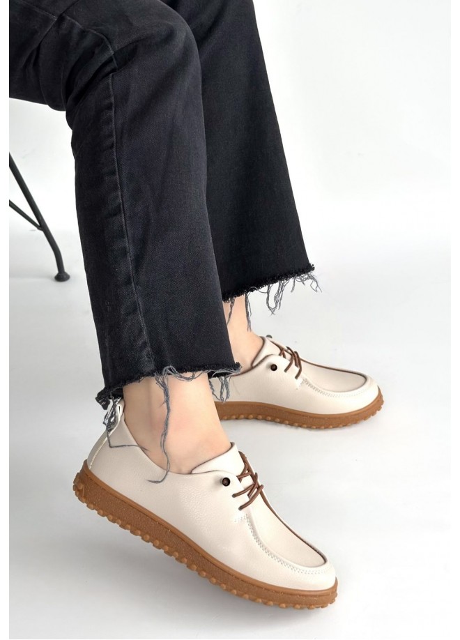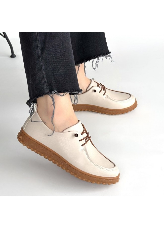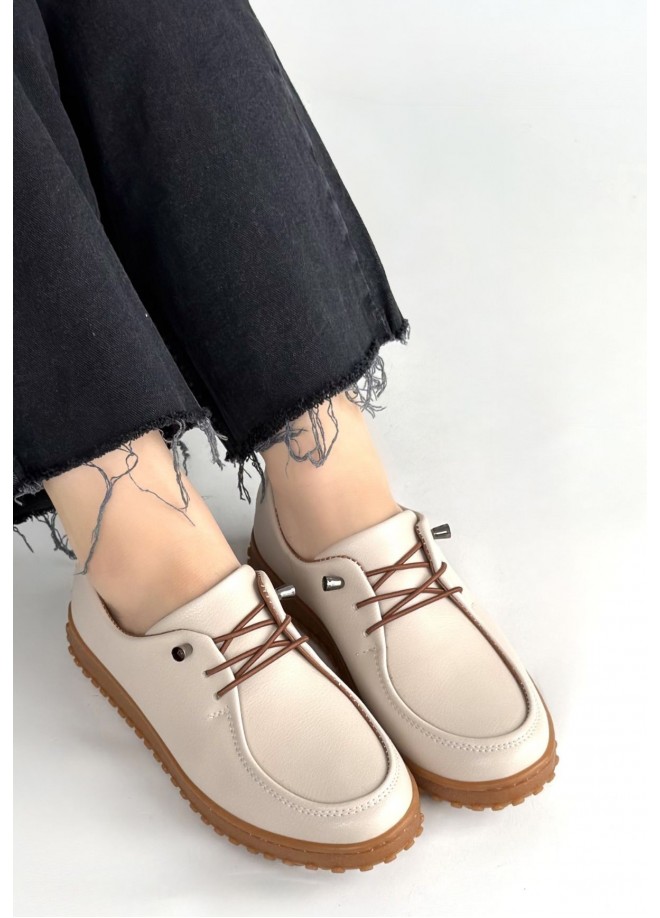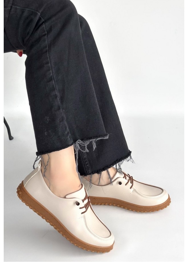 Guot Bej Cilt Bağcıklı Babet Ayakkabı