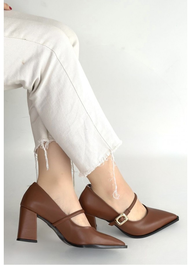 Nıvra Taba Cilt Topuklu Ayakkabı