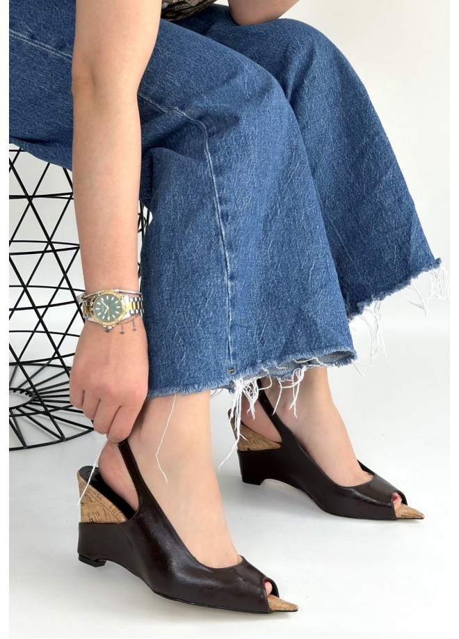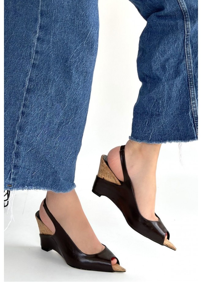 Nemba Kahverengi Rugan Dolgu Topuk Ayakkabı