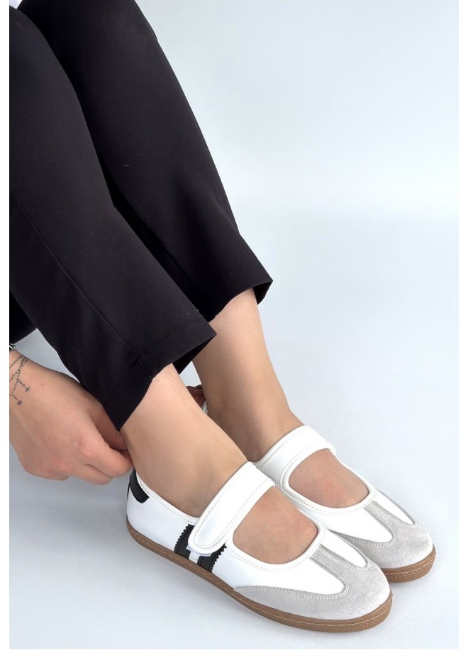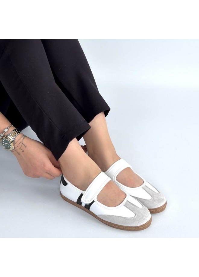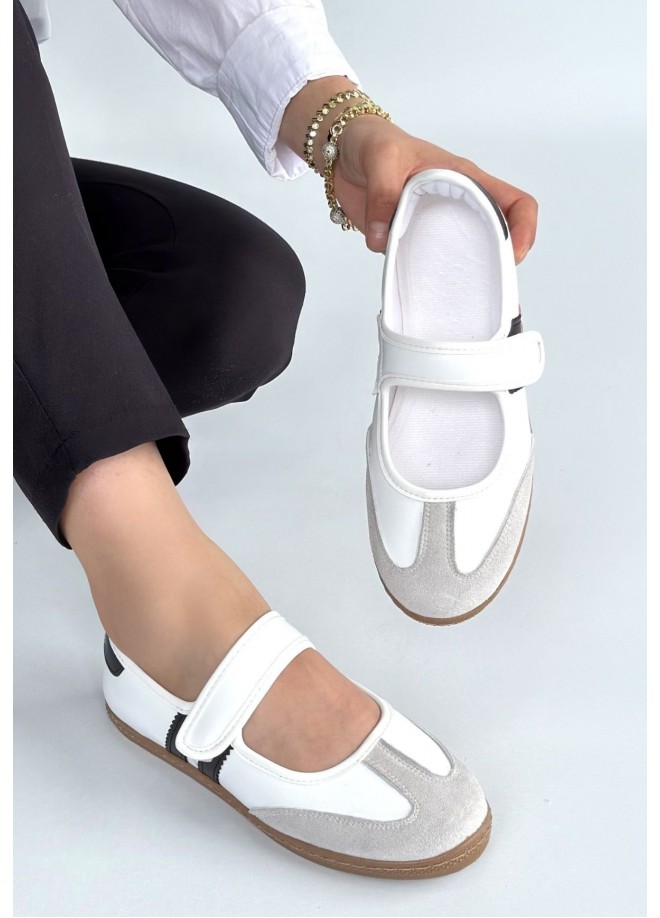 Menja Beyaz Cilt Cırt Cırtlı Babet Ayakkabı