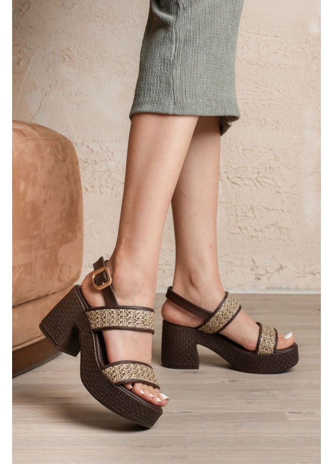 Etiketler: Wowi, Kahverengi, Cilt, Baskılı, Topuklu, Sandalet