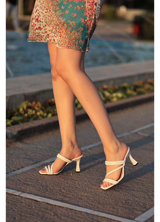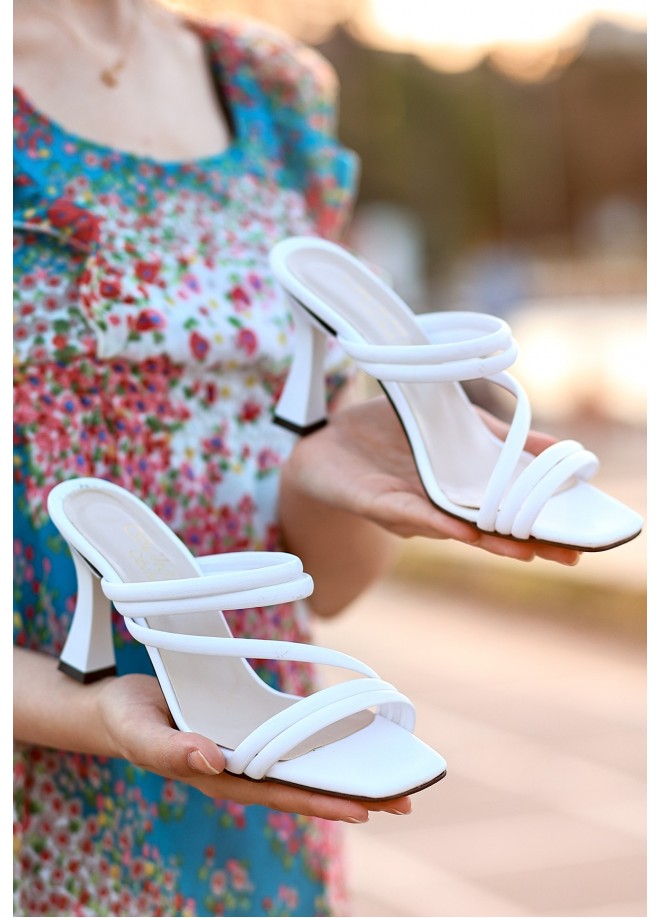Sarax Beyaz Cilt Topuklu Terlik