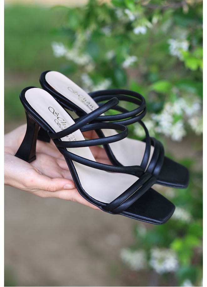 Sarax Siyah Cilt Topuklu Terlik