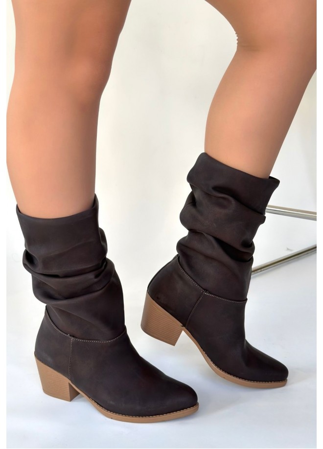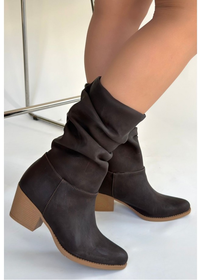 Yior Acı Kahve Nubuk Topuklu Bot