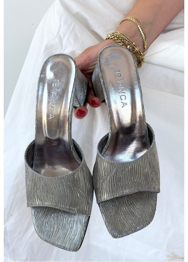 Luart Platin Simli Topuklu Terlik