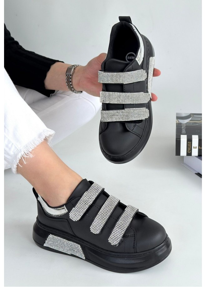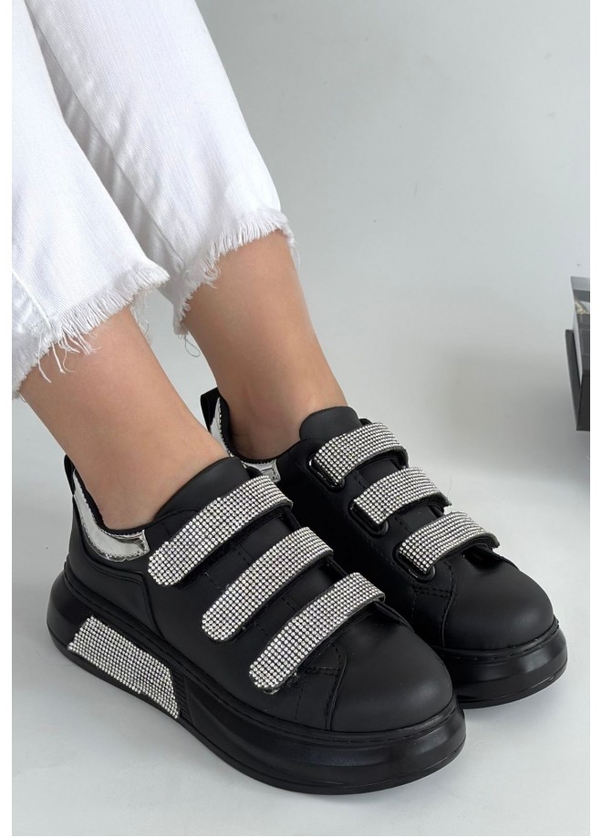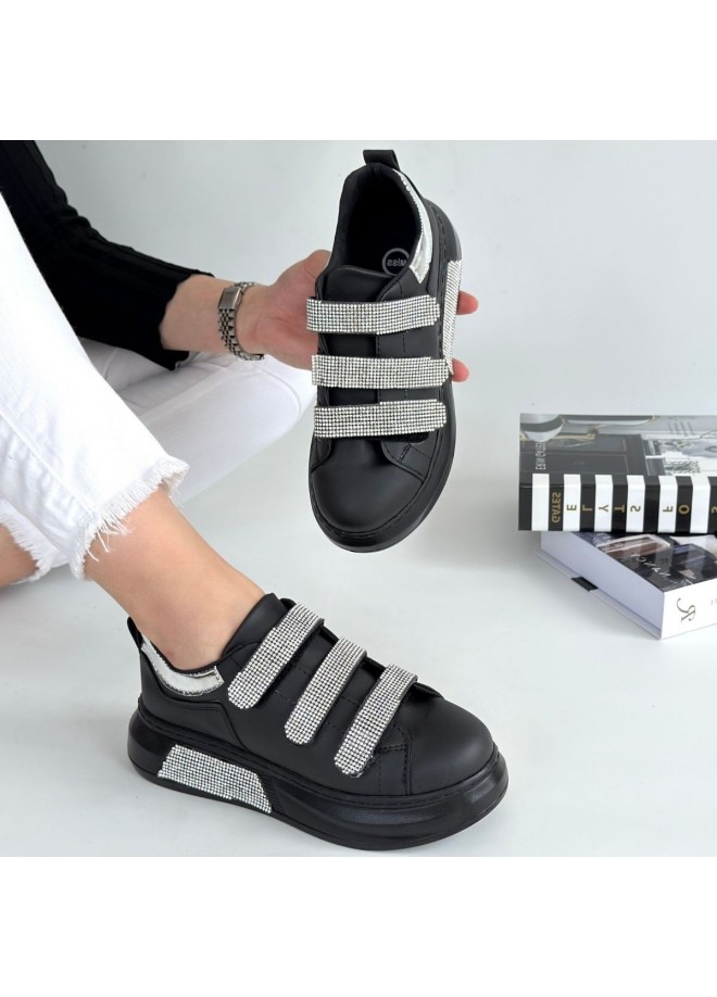 Elika Siyah Cilt Cırt Cırtlı Spor Ayakkabı