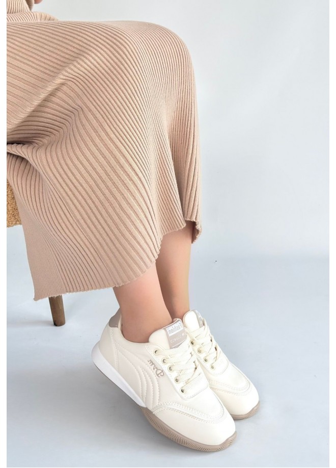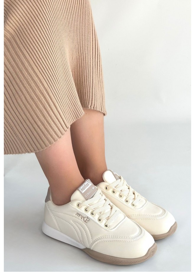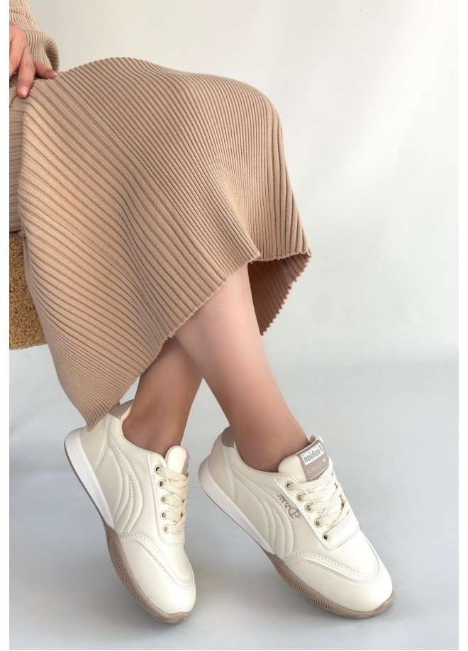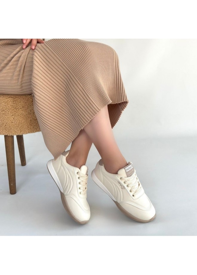 Tawen Bej Cilt Bağcıklı Spor Ayakkabı