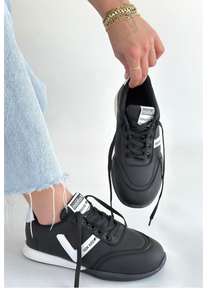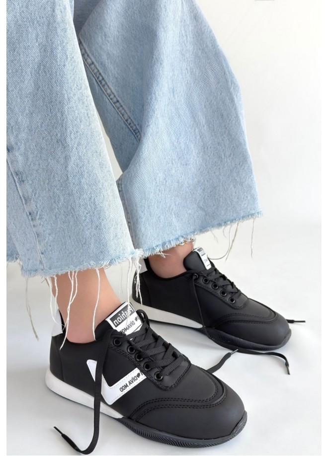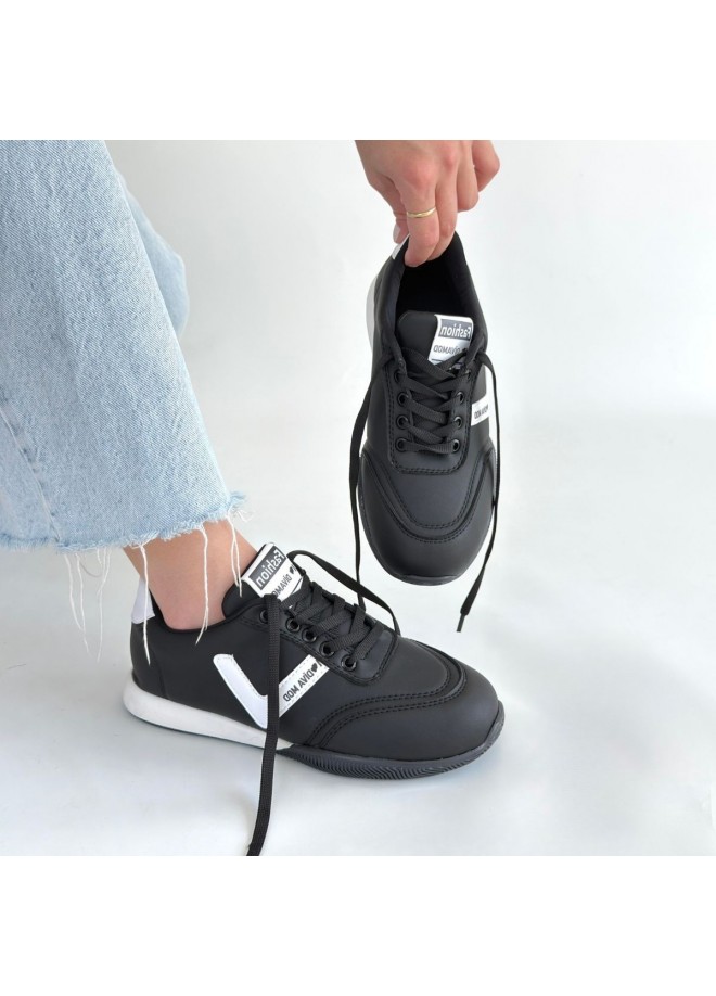 Jowen Siyah Cilt Beyaz Detaylı Bağcıklı Spor Ayakkabı