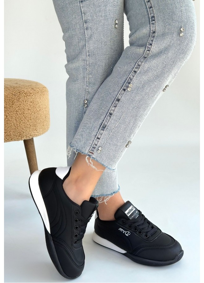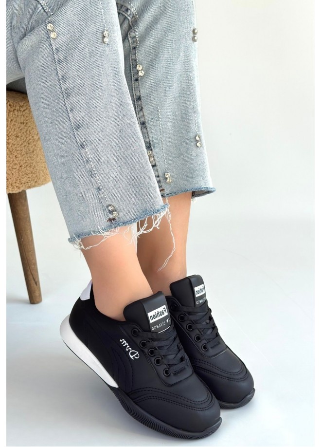 Tawen Siyah Cilt Bağcıklı Spor Ayakkabı