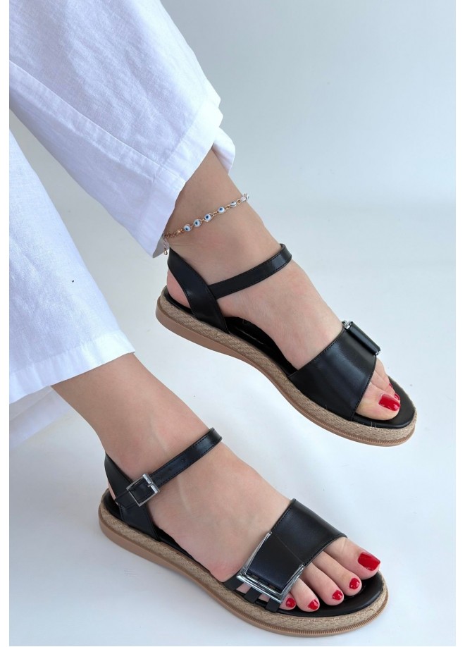 Andana Siyah Cilt Sandalet