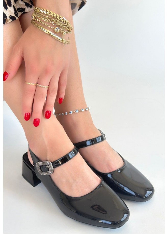 Gowe Siyah Rugan Topuklu Ayakkabı