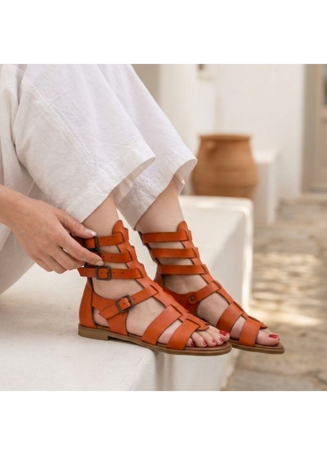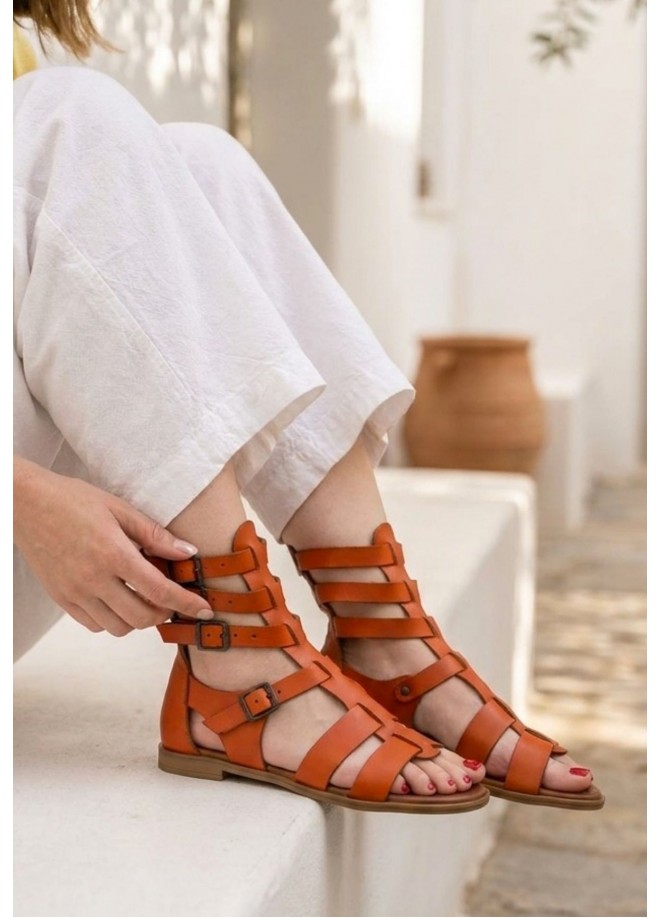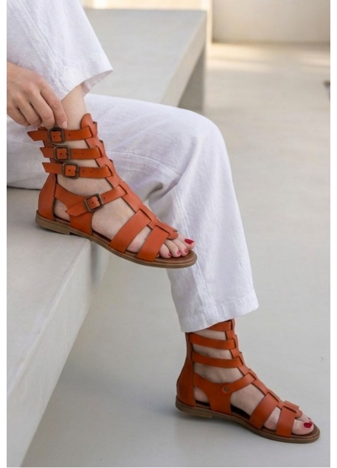 Nola Turuncu Deri Kemerli Sandalet