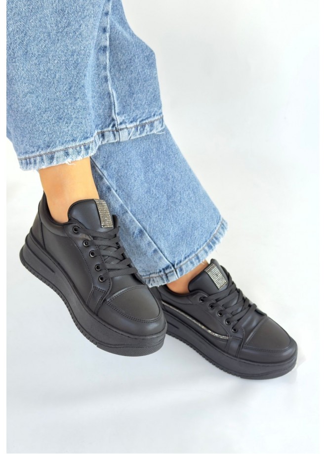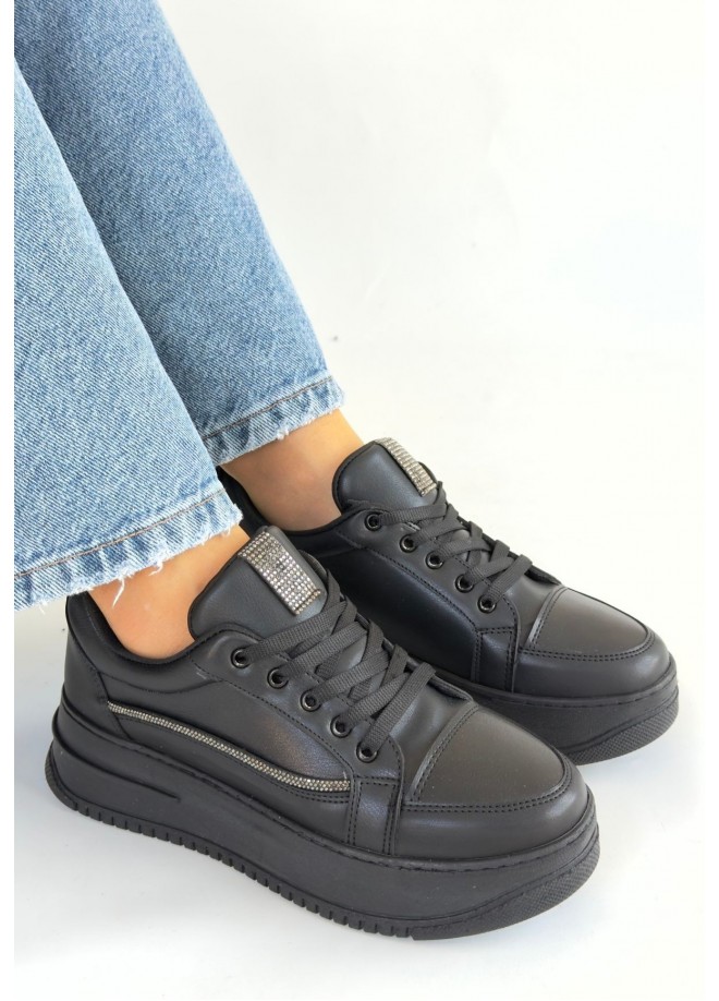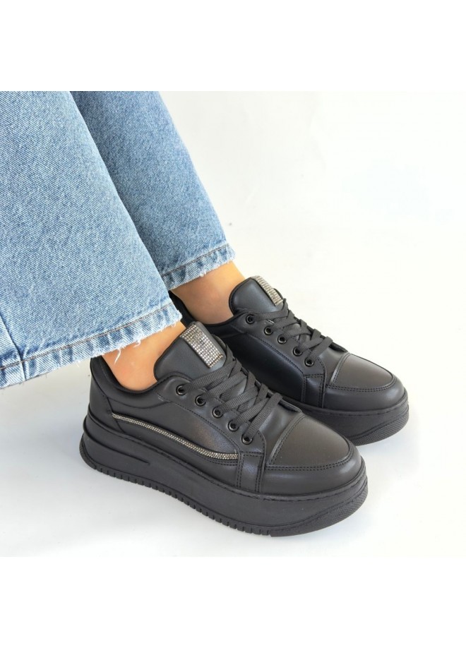 Natte Siyah Cilt Bağcıklı Spor Ayakkabı