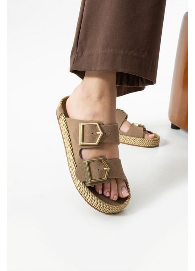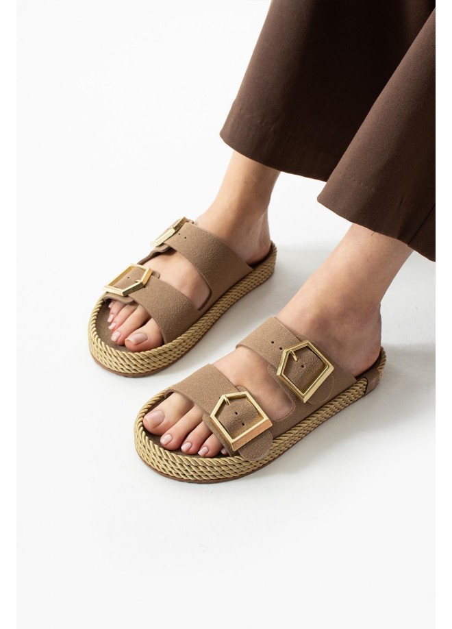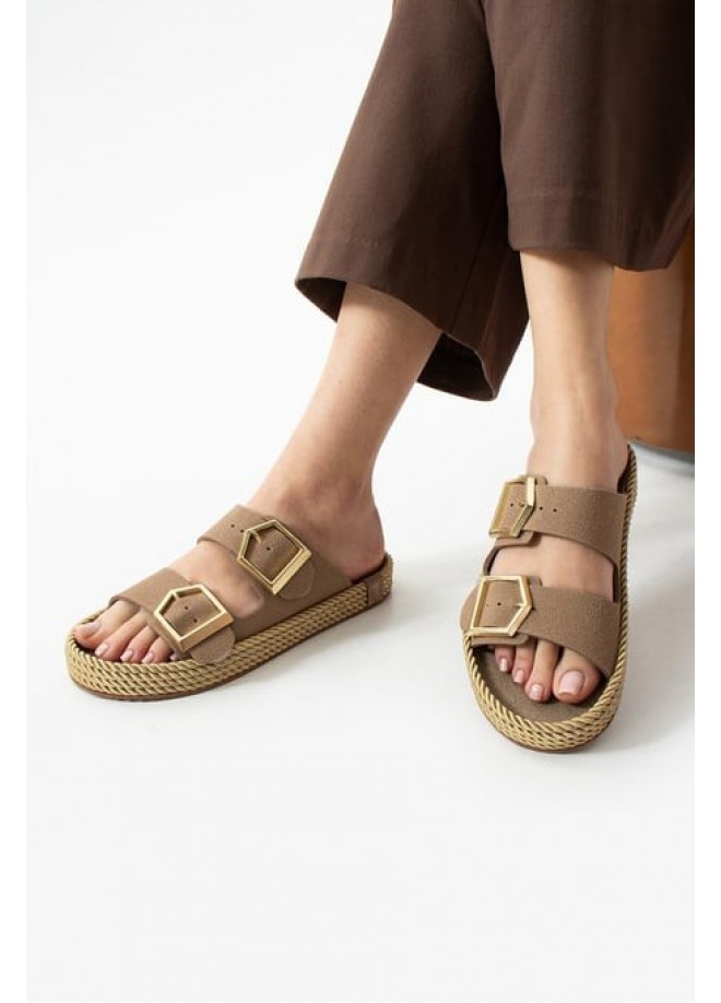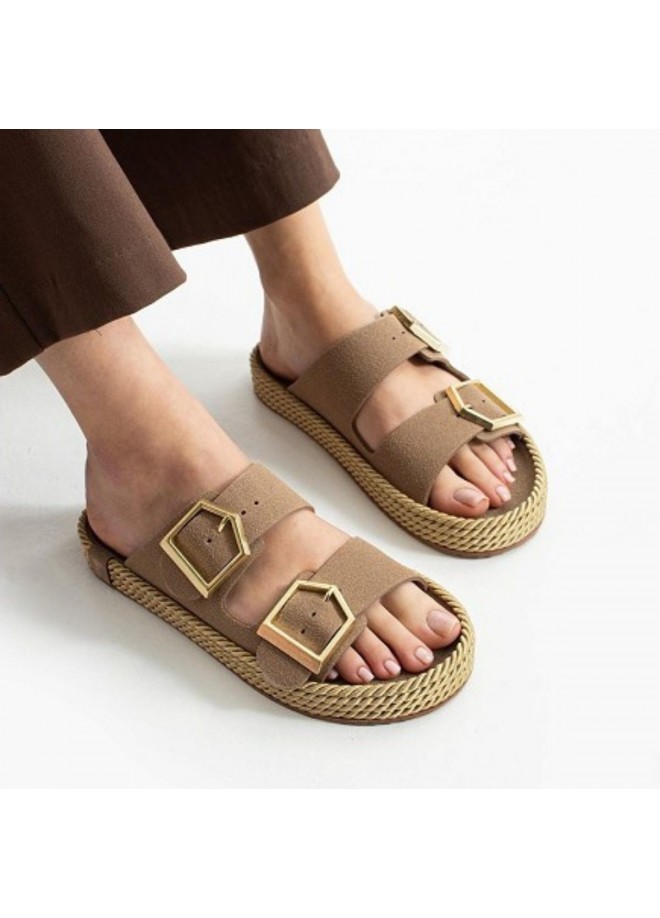 Loera Vizon Nubuk Çift Tokalı Terlik