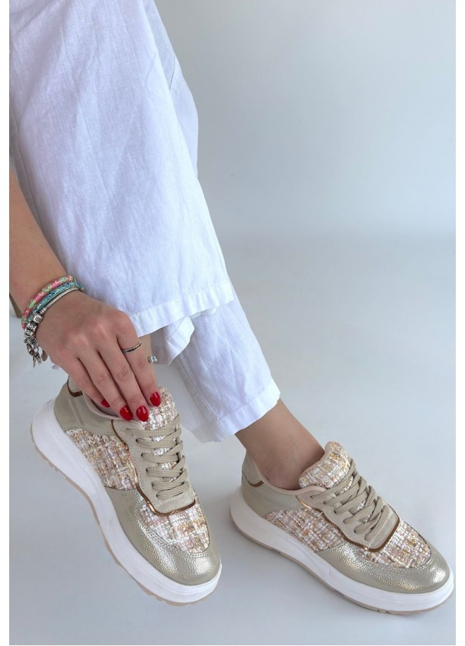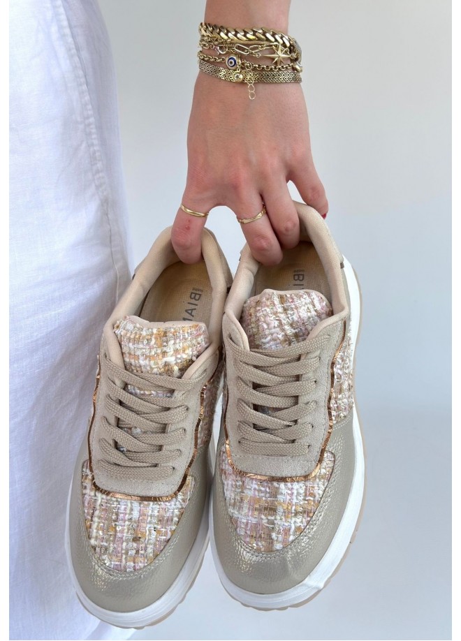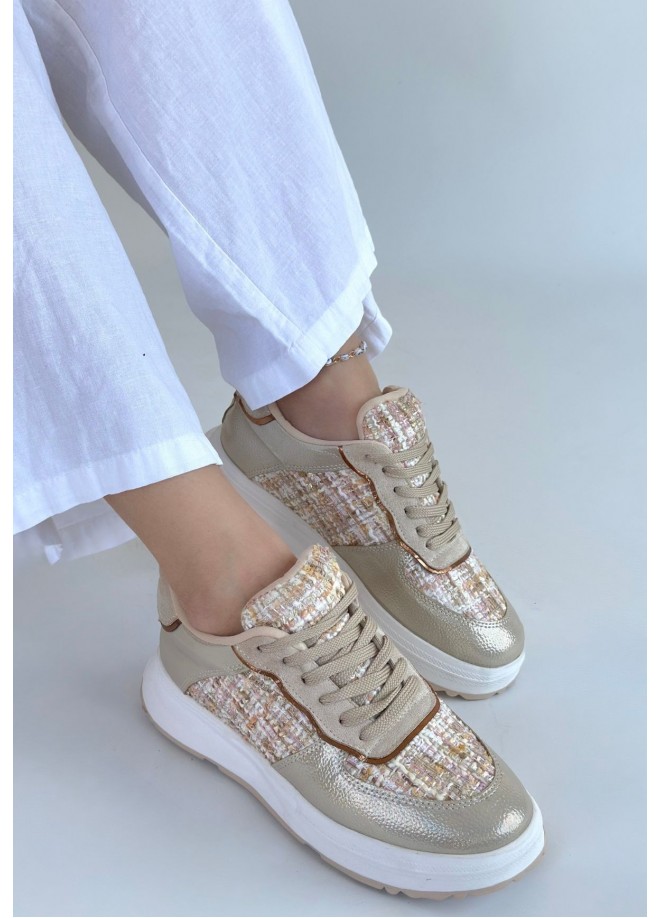 Hawer Bej Cilt Bağcıklı Spor Ayakkabı