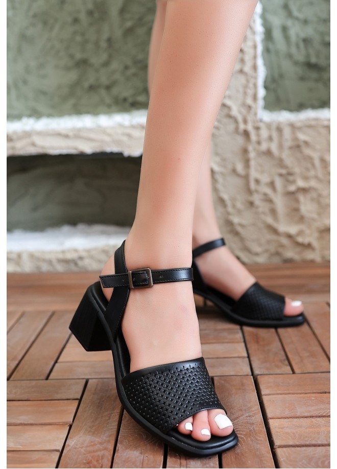 Laera Siyah Cilt Topuklu Sandalet